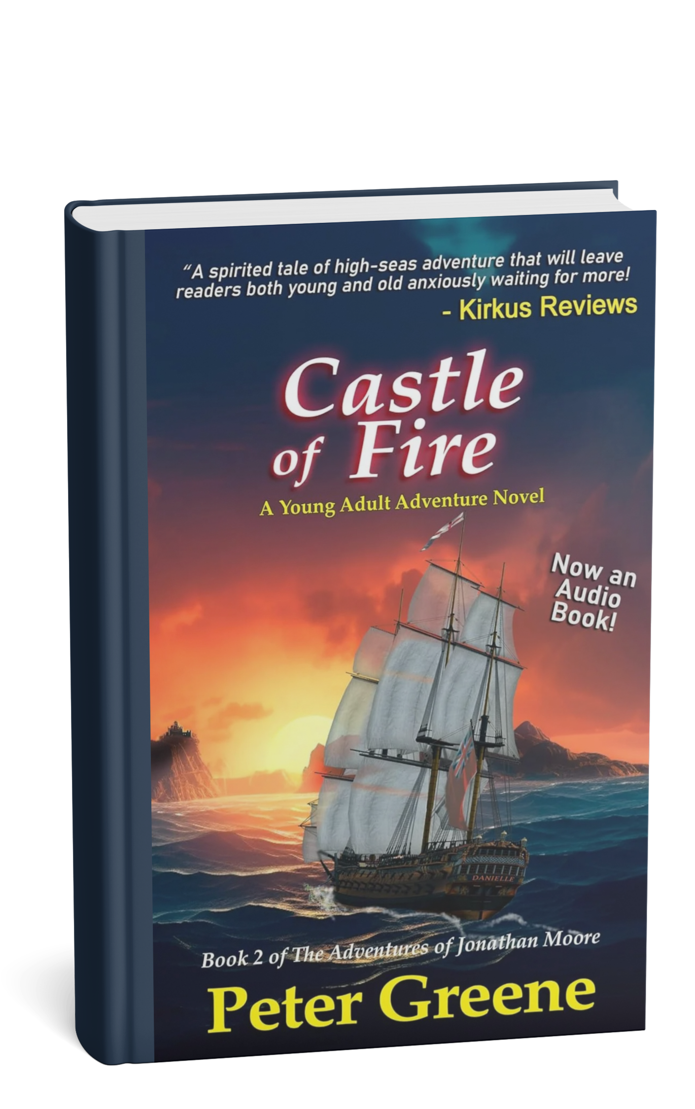 Once orphaned, thirteen-year-old Jonathan Moore is now reunited with his father, though soon leaves London on what is considered by all to be a ‘peach‘ of a mission. However, with the arrival of another midshipman holding a severe but unexplained grudge, life aboard HMS Danielle is anything but pleasant. Why are the new midshipmen his enemies? Who is stealing food from the ship’s stores, and why must Jonathan and Sean sneak into a heavily guarded Spanish fort in the middle of the night to do some burglary of their own? In this second book of the Adventures of Jonathan Moore Series, Jonathan must capture a stolen British ship from blood-thirsty pirates, solve the mystery of the surprising stowaway, and defend his honor and his life during a fierce duel to the death with a murderous adversary. Alone and vastly outnumbered, the crew of the Danielle engages in a violent battle on the wild seas south of the farthest tip of Africa. Only Jonathan, Sean, and an unexpected guest can turn the tide of the struggle by unlocking the secrets of a mysterious island and re-igniting the ferocious power of the Castle of Fire!